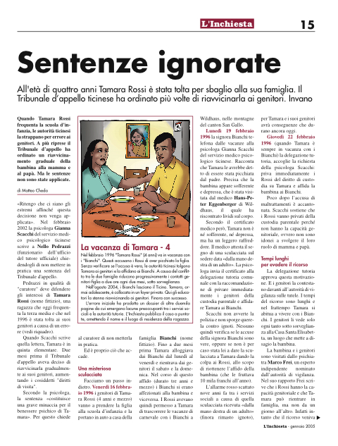 Criticare l'operato dei servizi sociali può avere spiacevoli conseguenze. L'hanno sperimentato i genitori di Tamara che per ordine delle autorità tutorie possono vedere la loro figlia solo due ore ogni due mesi, sotto sorveglianza. Il padre di Lorenzo ha ottenuto un trattamento ben diverso.